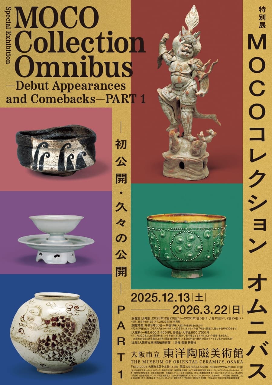 This exhibition presents a selection of important collections in an omnibus format, including the Shokei Collection, centered on tea utensils, most of which will be exhibited for the first time; the Irie Masanobu Collection, focused on Chinese ceramic drinking vessels and returning to public view after a long interval; the Hakurouro Collection, comprising Chinese ceramics; the Unno Nobuyoshi Collection, featuring Chinese ceramic tomb objects such as human figures, animals, and architectural models; and the Suzuki Masao Collection, consisting of works and archival materials formerly owned by Asakawa Noritaka, a ceramics researcher who introduced the beauty of Korean ceramics to Japan.